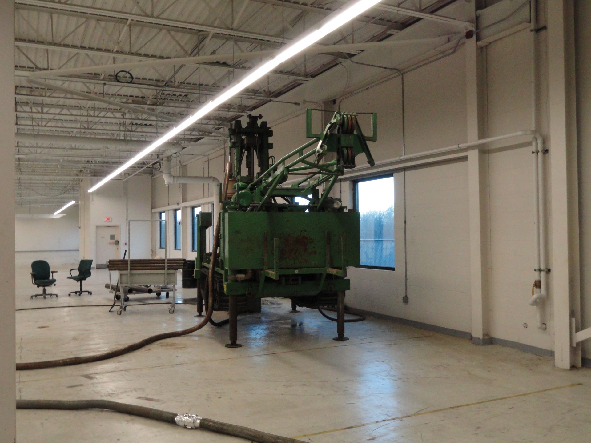 Inside building with 15' clearance and garage door access, (28) 2" PVC Injection Wells to 50' with drive and was 5" casing, inside building with 15' clearance and garage door access, exhaust equipment was in place up to 300'-350'.
